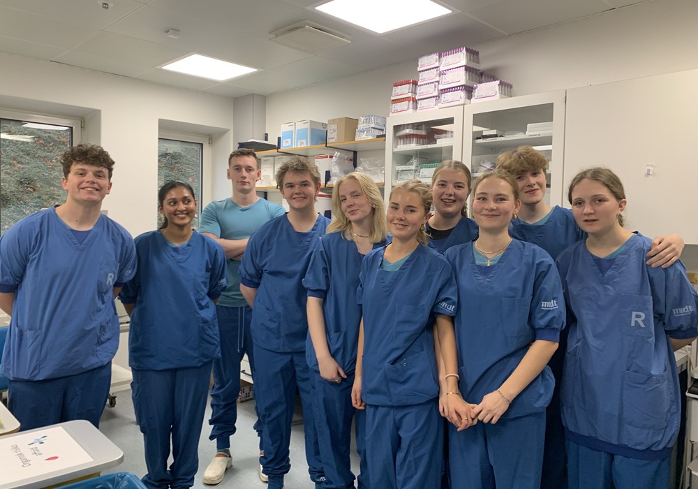 Efter en god nats søvn var vi igen klar og drog til Skejby Universitetshospital. Her bød formiddagen på et oplæg af en Ph.d.-studerende som forskede i strålebehandling af kræftceller, men vi fik også en grundig indsigt i hvordan forsøgsdyr indgår i forskning. Om eftermiddagen trak vi i operations-dragter og var så heldige at komme med nogle medicinstuderende til operations-øvelser, hvor vi så hvordan de bl.a. øver sig i at indsætte hjerteklapper, fjerne nyresten m.m. på grise-patienter. Alt i alt en super-spændende tur 😊