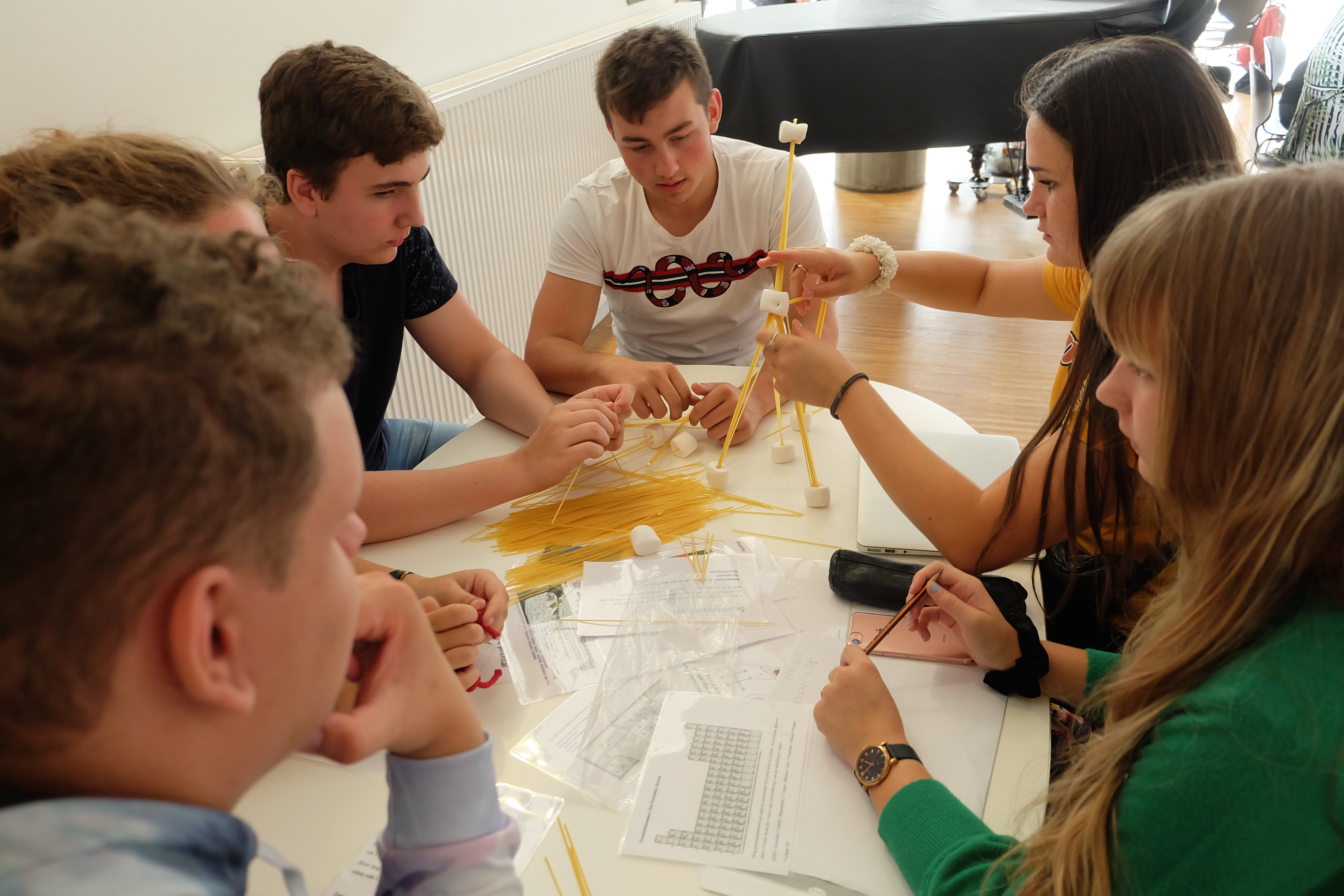 I sidste uge var alle 1.hf klasser samlet til NF-dag (NF = Naturvidenskabelig Faggruppe) på skolen. Programmet stod bl.a. på klassekonkurrencer i selvbærende broer og sæbebobler, en eftermiddag fyldt med forskellige opgaver, der udfordrede eleverne på tværs af klasserne i f.eks. dans, skumfidustårne, morsekode, kendskabet til dyr, det periodiske system og knobbinding samt forskellige logiske puslespil. Dagen sluttede af med hyggelig aftensmad i det gode sensommervejr. Se billeder her