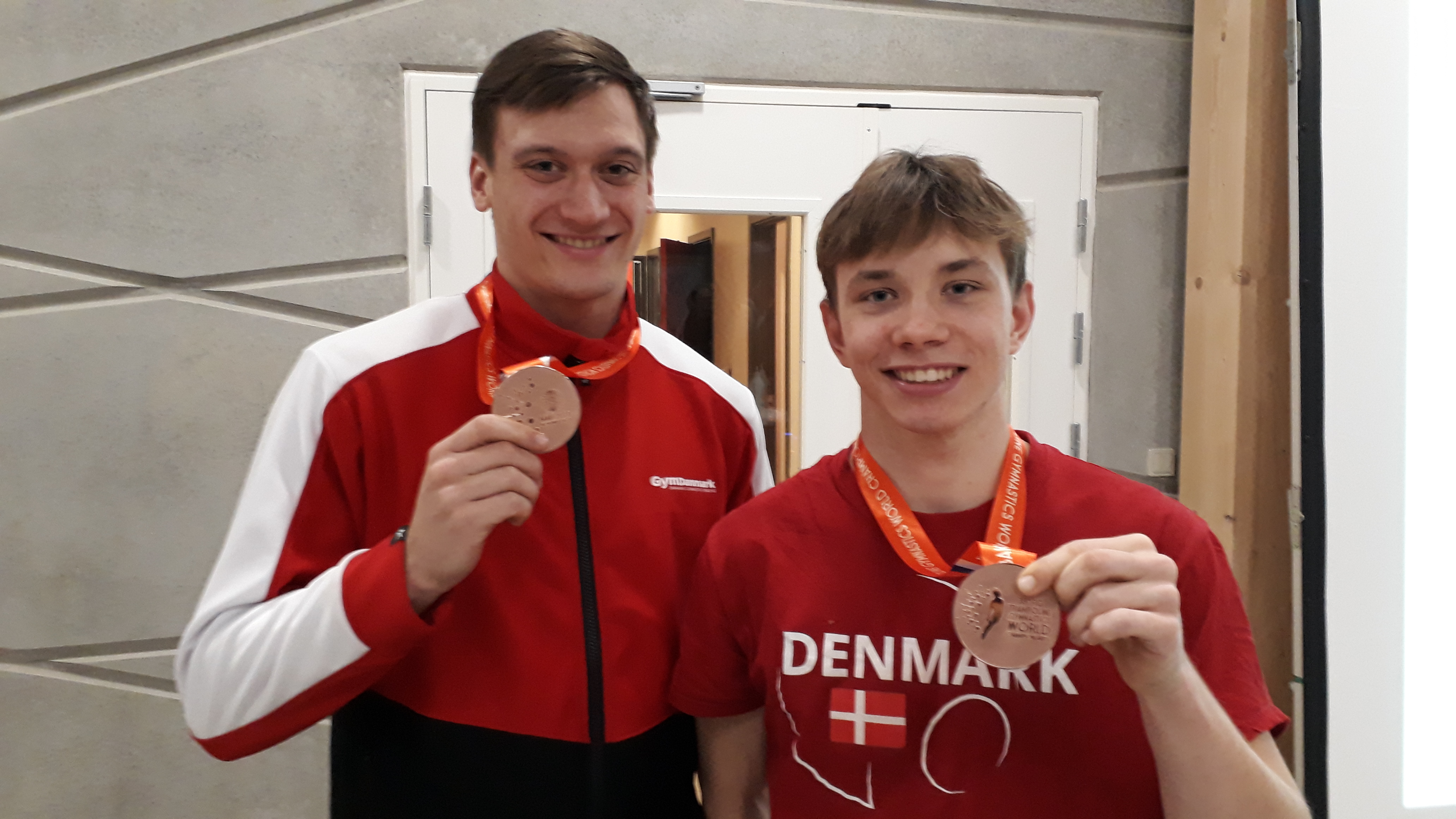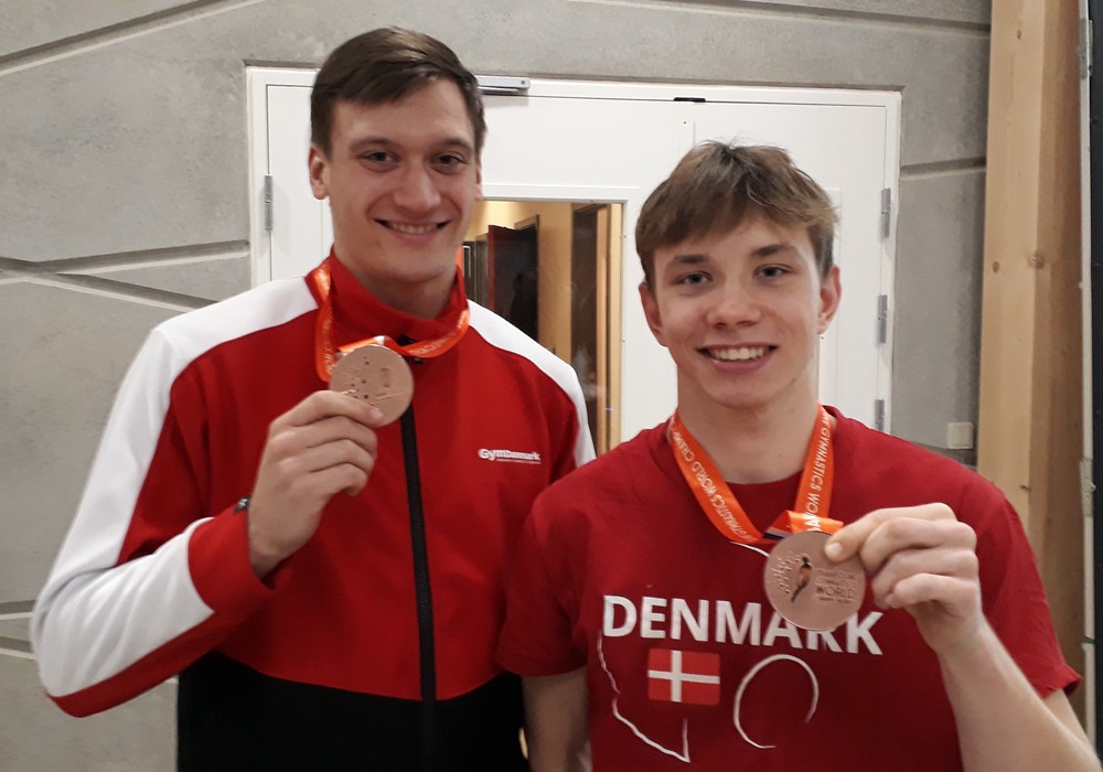 VM medaljer til en nuværende og en tidligere elev på Svendborg Gymnasium! På billedet viser Johannes Sømod (student fra 2018) og Magnus Lindholmer (2.z) deres medaljer frem. I sidste uge vandt de bronze i holdkonkurrencen ved VM i tumbling, der blev holdt i Aserbajdsjan. I går blev det fejret i SG Huset, hvor de velvilligt stillede op til fotografering. Tillykke med medaljerne og to flotte eksempler på, hvordan man kan kombinere eliteidræt med uddannelse.